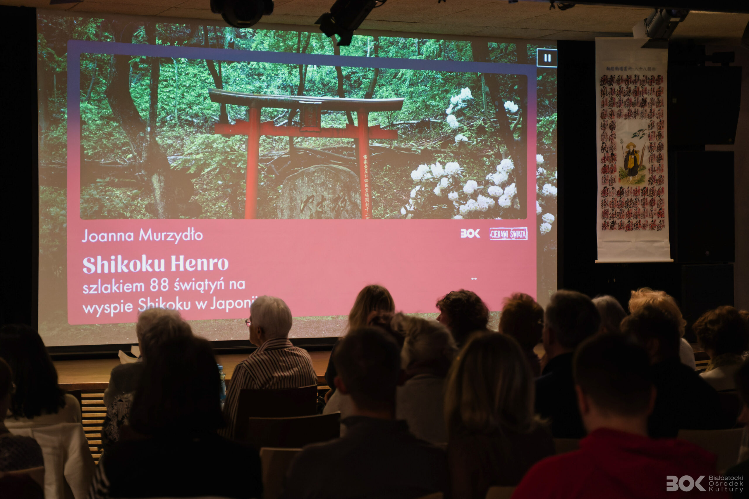 Przewodnikiem tej wyprawy była Joanna Murzydło – podróżniczka i fotografka. Podczas prelekcji opowiedziała o swojej samotnej, 37-dniowej pielgrzymce (1200 km) śladami mnicha Kūkai. Poznaliśmy kulisy życia na szlaku, unikalny zwyczaj osettai oraz zobaczyliśmy autorskie fotografie tych malowniczych rejonów.
