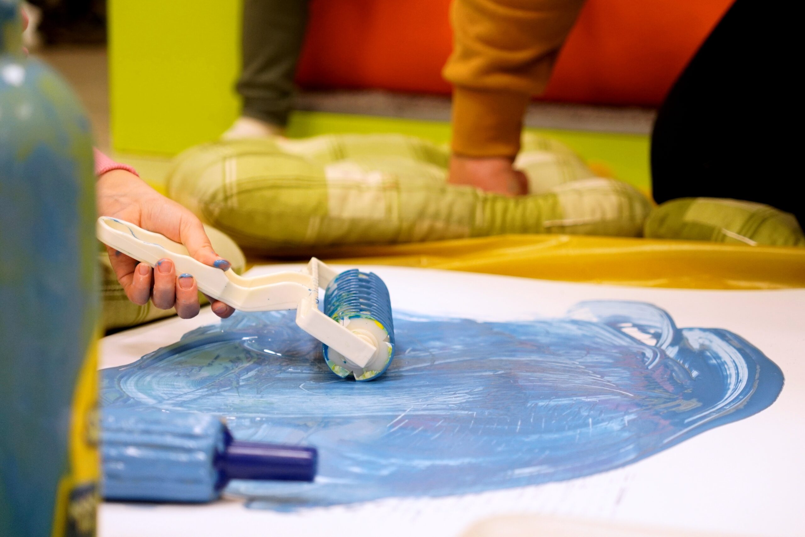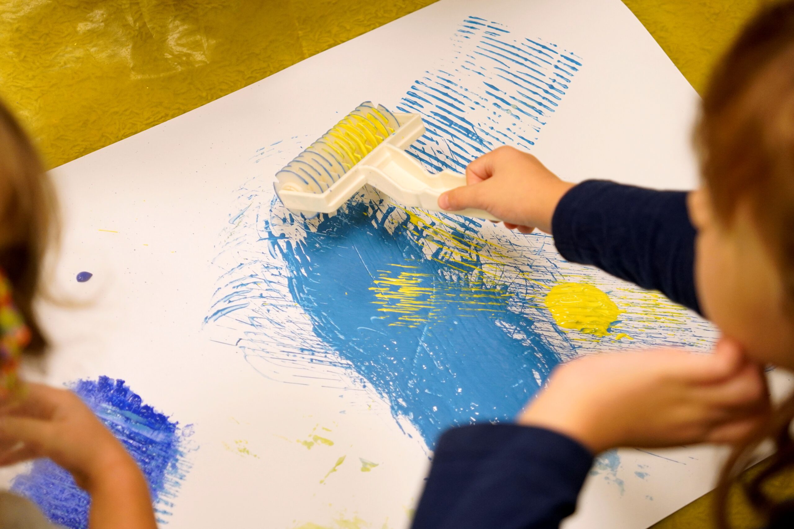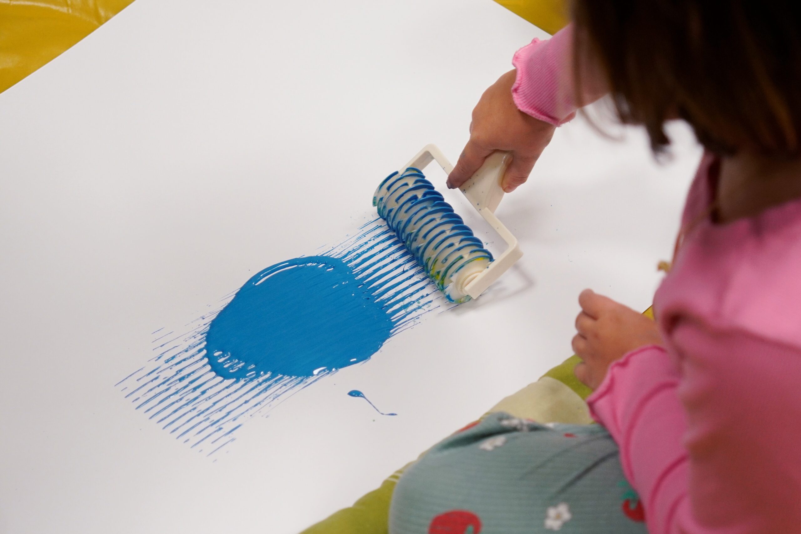 Malowanie wałkami to rozwinięcie klasycznego malowania palcami i jego urozmaicenie. Znakomicie sprawdza się w pracy z maluchami i rozwija motorykę małą. Zabawa gwarantowana, a pranie ubrań, obowiązkowe!