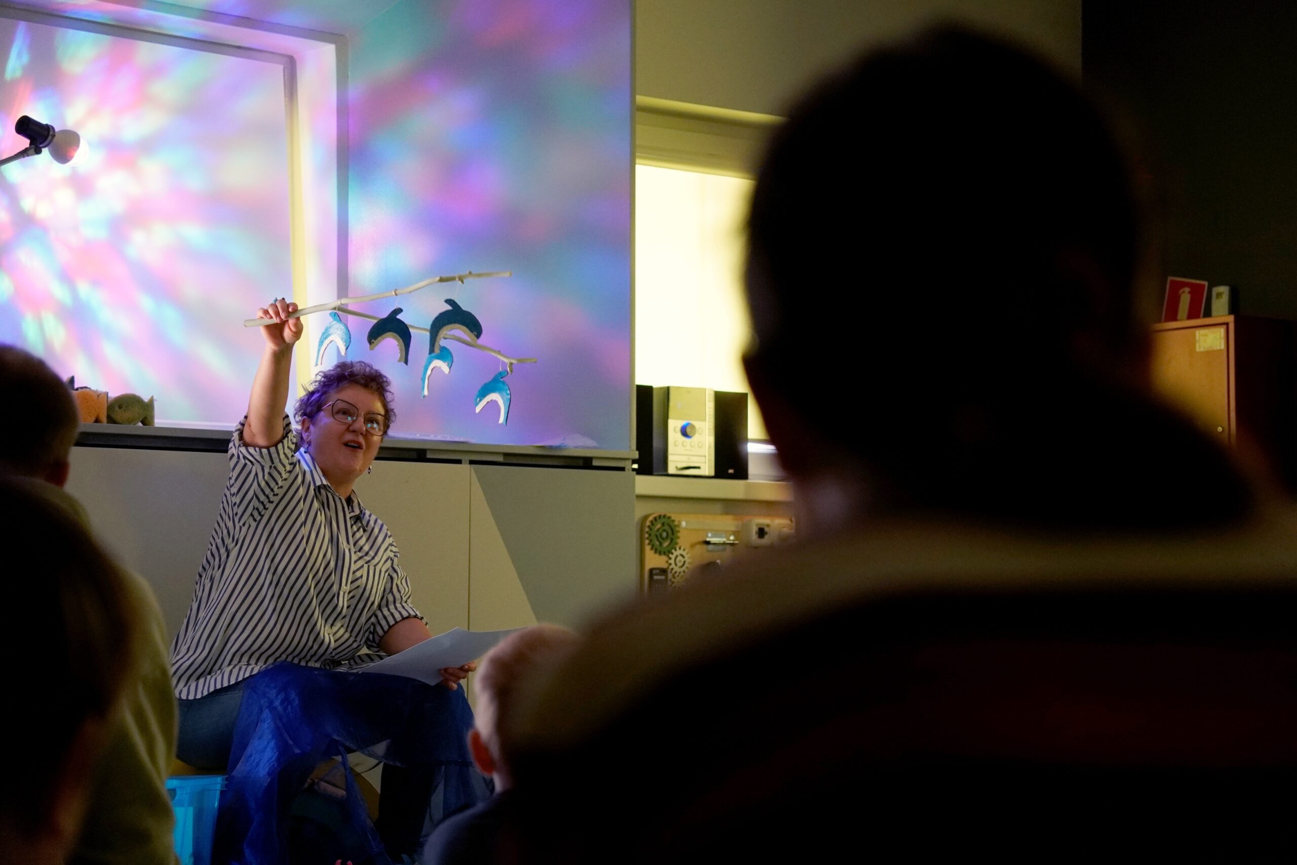 Podczas warsztatów wysłuchamy (animowanej postaciami wykonanymi z recyklingu) bajki o delfinie, a następnie namalujemy morze „taplając się” w farbach. Narzędziami pracy będą różnego rodzaju wałki, którymi wymieszamy farby i stworzymy powierzchnię „morza”.