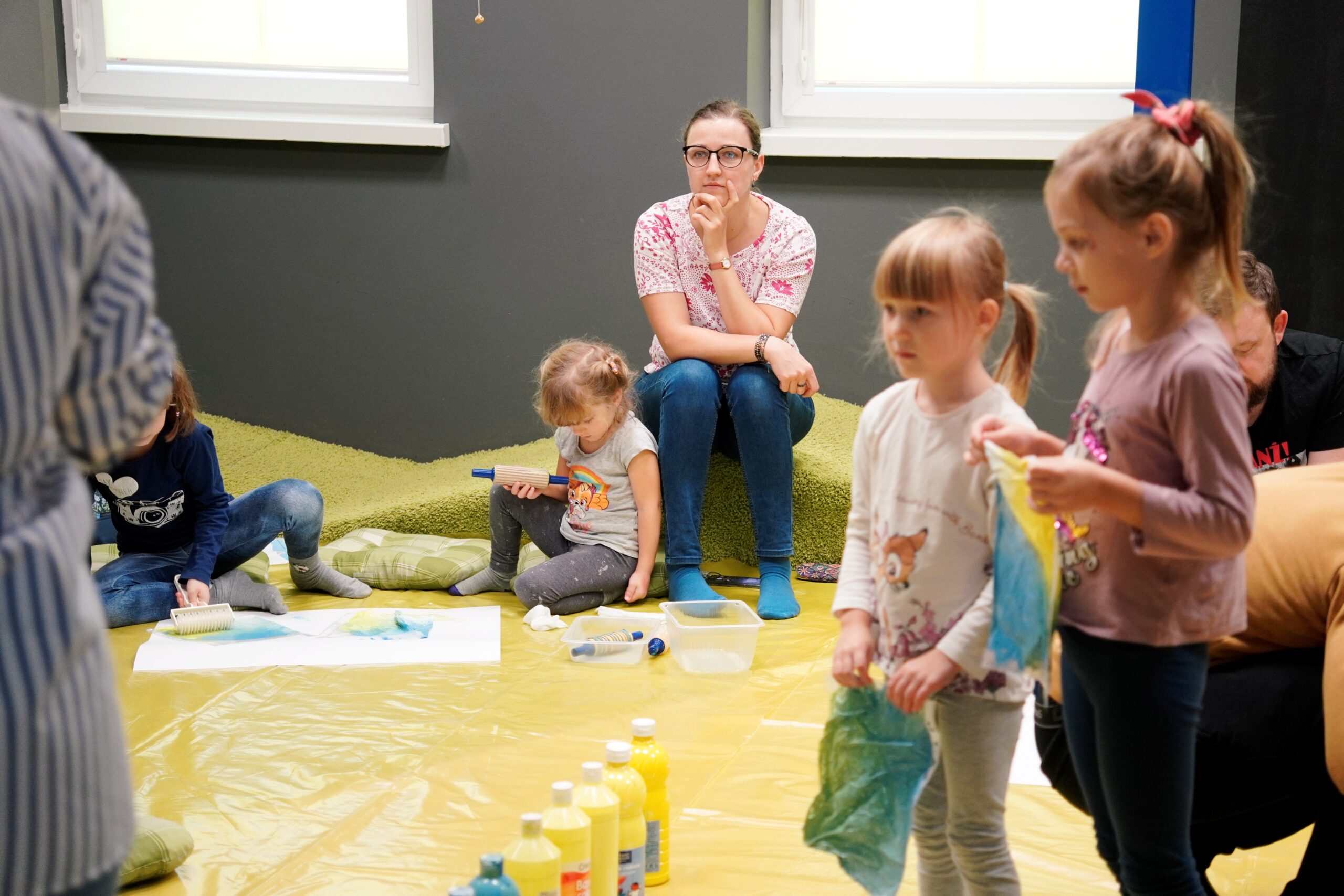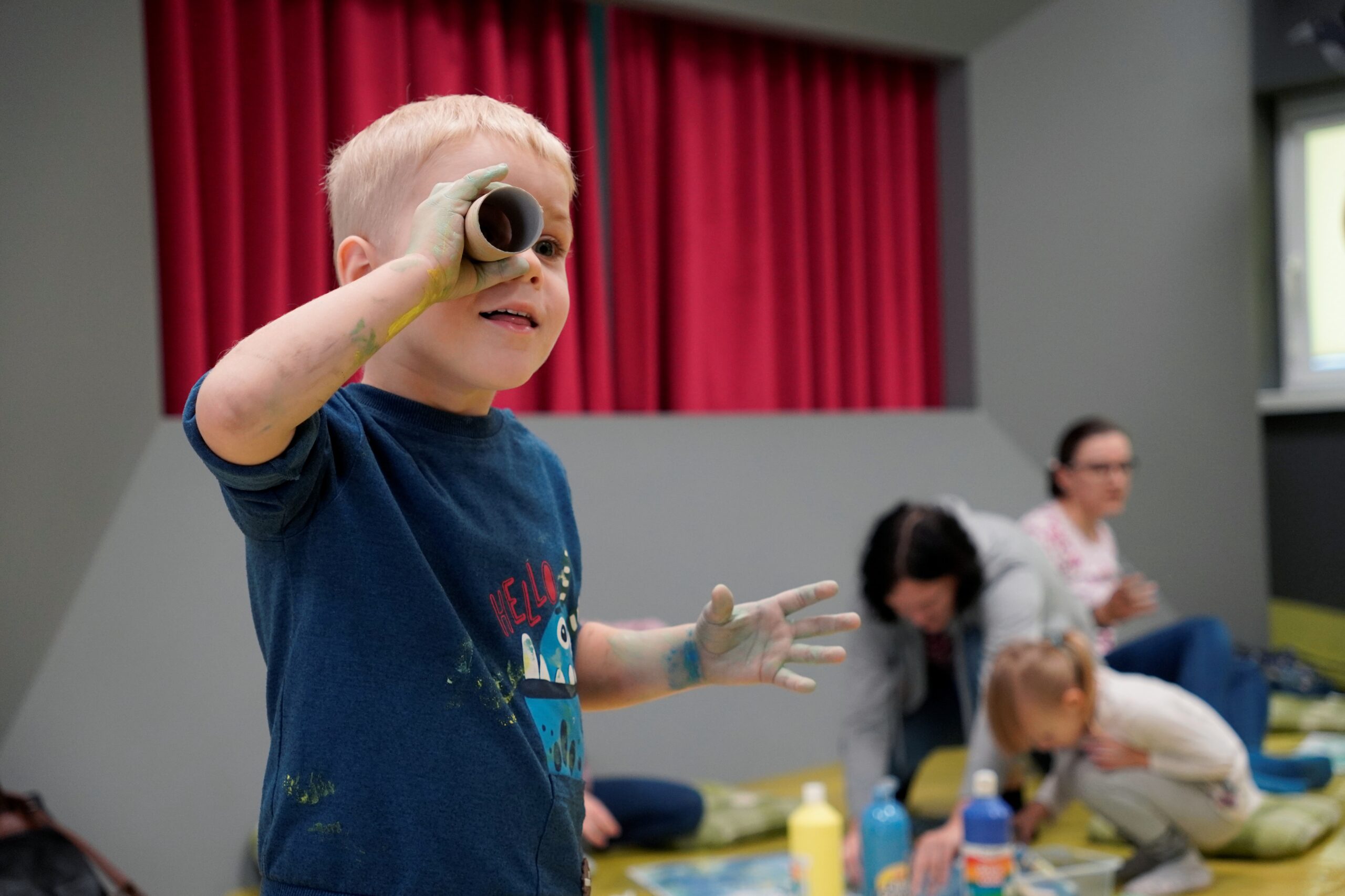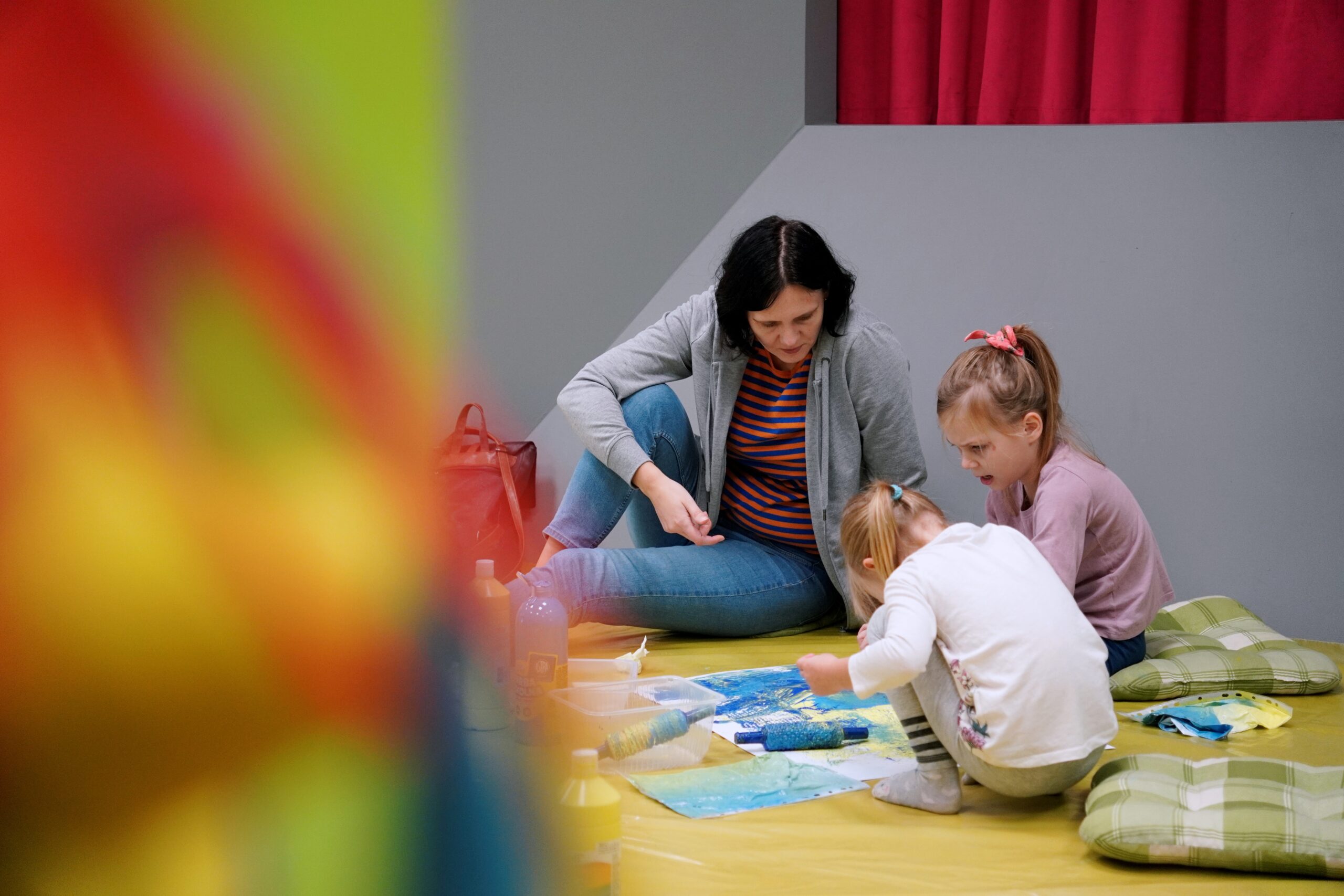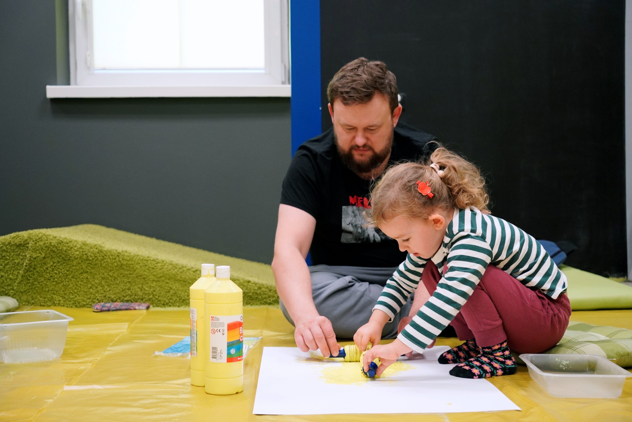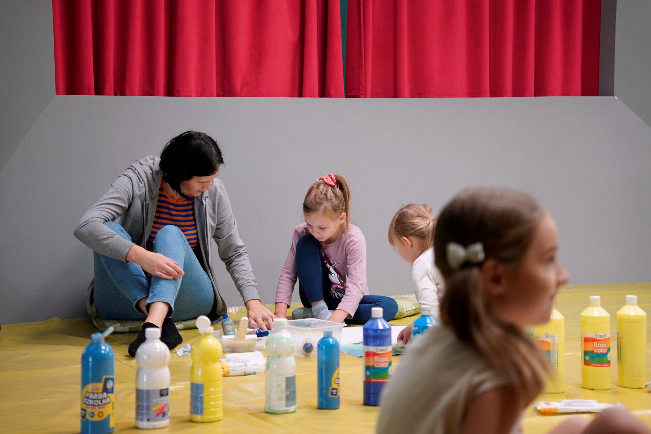 Podczas warsztatów wykorzystujemy farby plakatowe i pracujemy na podłodze – prosimy założyć stosowne ubranie i wygodne obuwie.